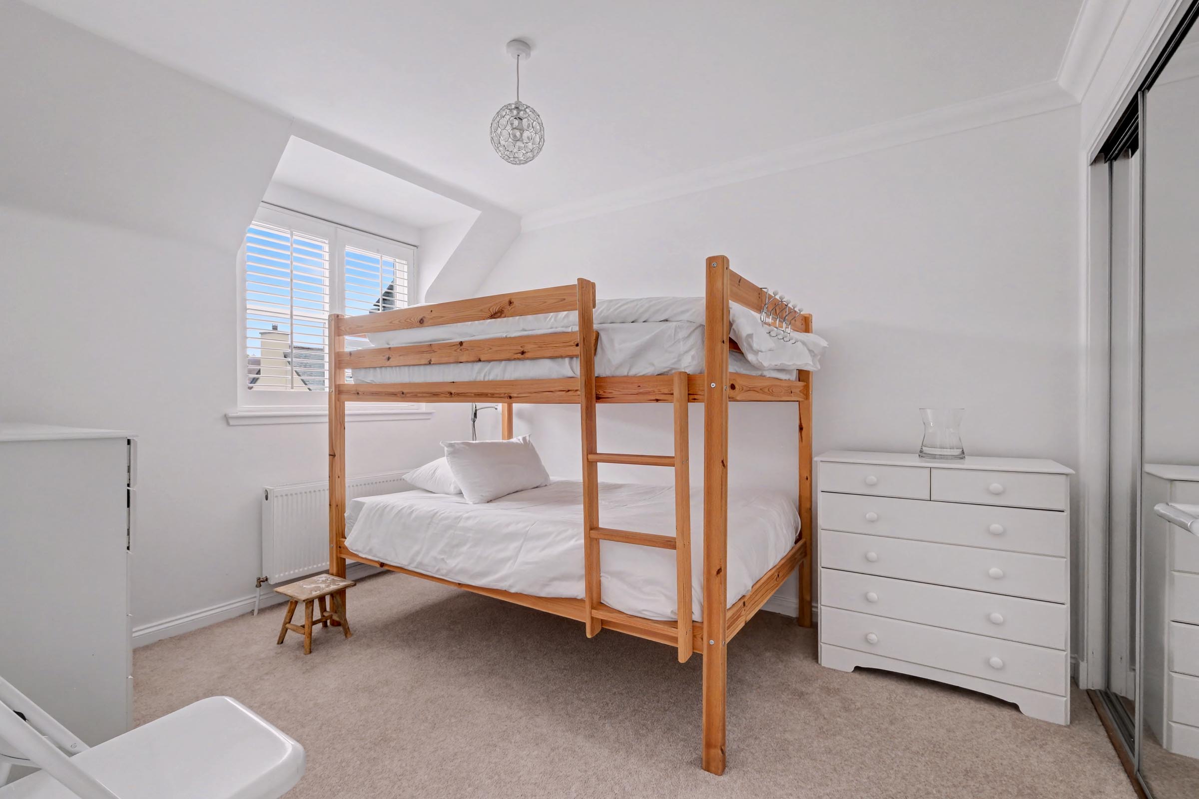 Currently furnished with double bunk beds, the principal bedroom overlooks the front of the property with views towards the surrounding landscape. Providing ample storage, the room benefits from built-in mirrored double wardrobes fitted with hanging rail and shelving. Fitted carpet and central light fitting.