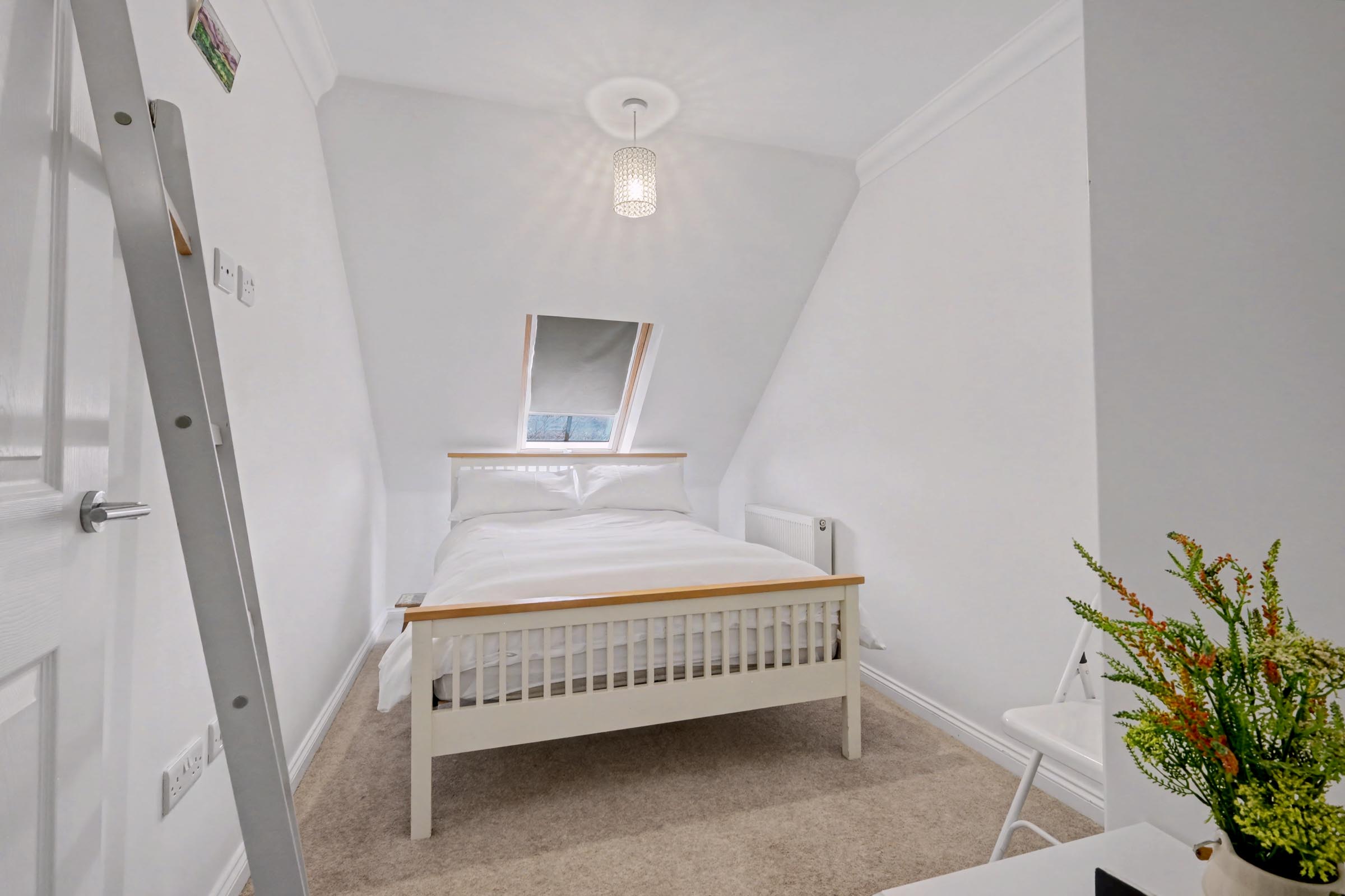 Double bedroom three is of ample proportions with natural light filling the room via the Velux window. Offering space for free standing furniture, complete with a fitted carpet and central light fitting. This room could be utilised as a home office.