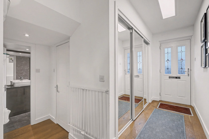 Entered via a composite door with glazed sections, this bright reception hall boasts extensive fitted storage facilities with sliding mirrored doors, further under stair cupboard offers additional storage space. Fresh neural décor is complimented by attractive oak flooring. Hatch with Ramsay style ladder to roof void.
