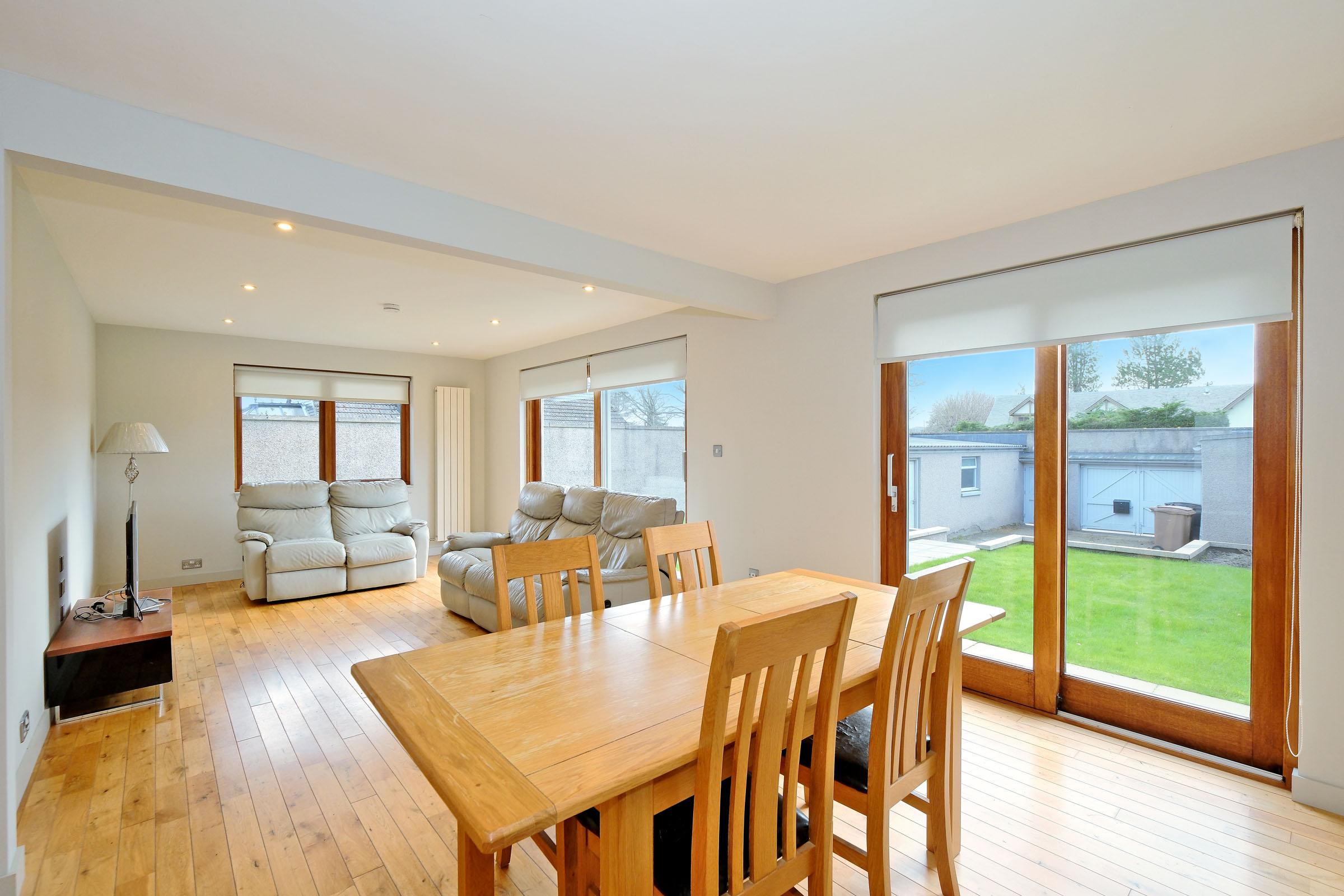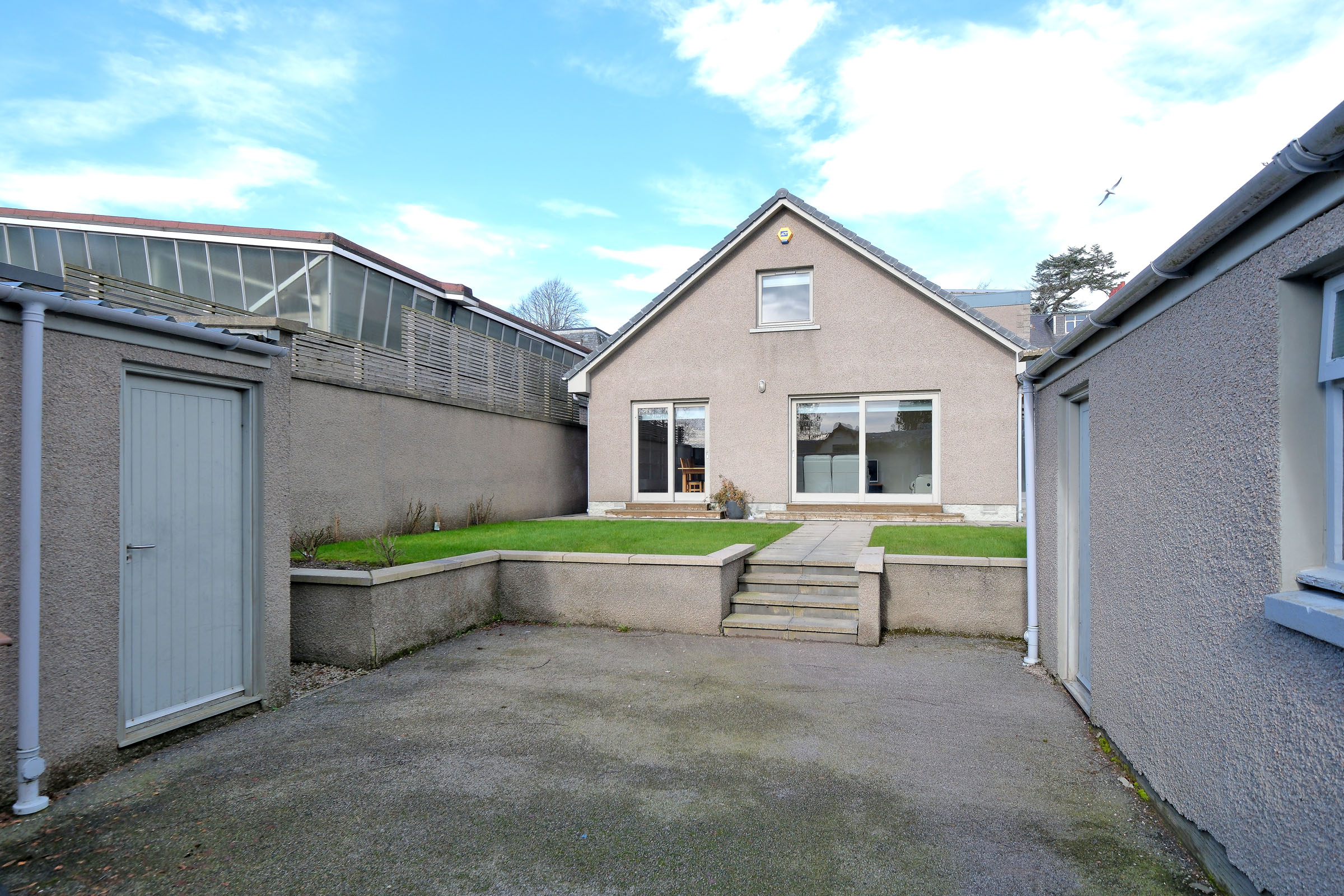 The property enjoys a high degree of privacy. From South Avenue, a single garage is situated to the side of double doors and a further door for pedestrian access. The double doors open into a large tarmac courtyard, which provides ample parking facilities for at least two vehicles. The garage within the courtyard benefits from light and power. A set of steps from the courtyard lead up to the front garden, which lies on an elevated position. Laid to lawn to either side of the path, there is access to both the main entrance door and along the side of the property to the rear garden. Mostly paved and with a rotary clothes dryer, the rear garden includes a neat border with a selection of plants. Perfectly placed for enjoying the afternoon sunshine, the rear garden is the ideal location for “al fresco” dining.