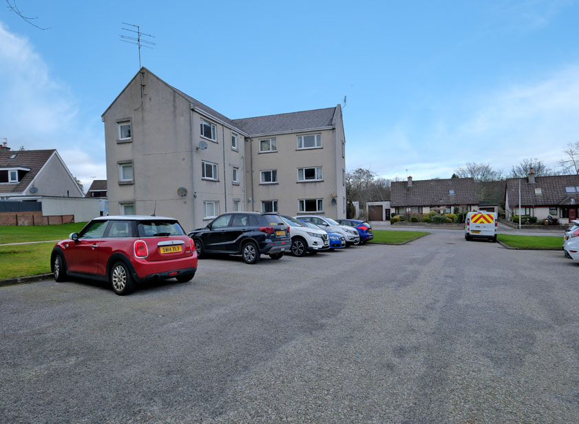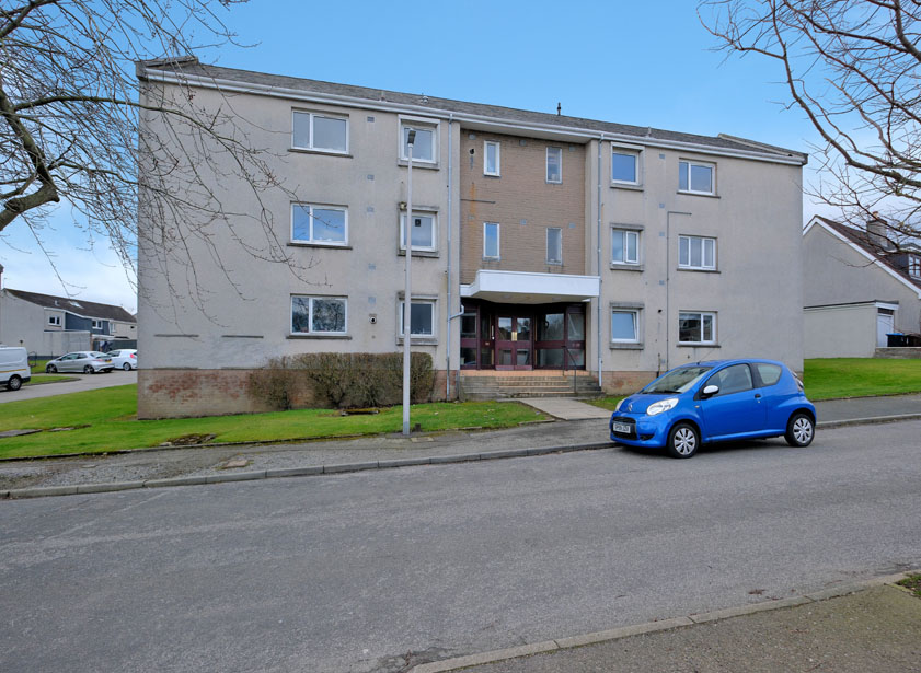 Leave the City Centre heading west on Queen’s Road and continue straight ahead at the roundabout with Anderson Drive remaining on Queen’s Road. At the following roundabout at take the second exit again remaining on Queen’s Road then right onto Woodend Crescent. Number 72 is located within the first block of flats on the right-hand side of the road as indicated by our Mackinnons “For Sale” sign.