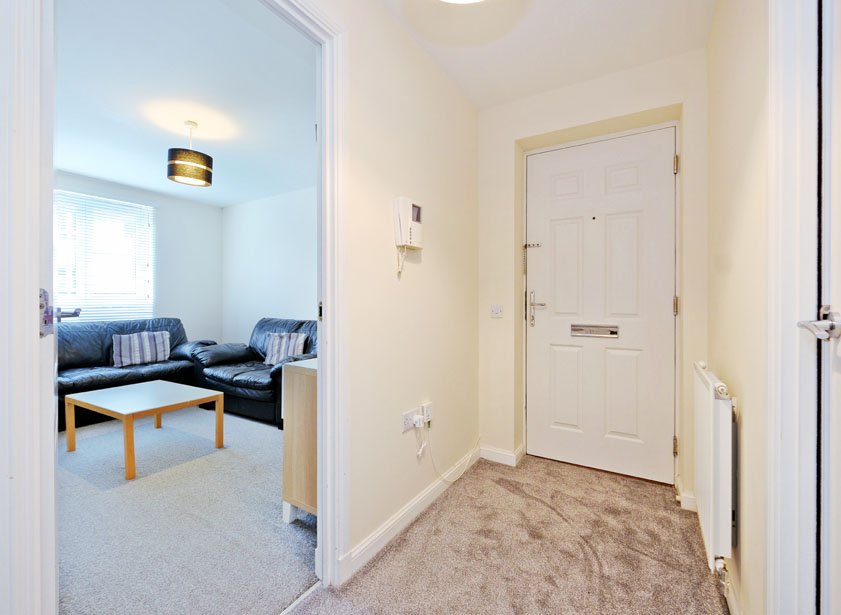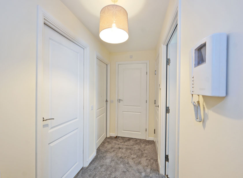 The property’s exterior door gives access into the hallway and on into the main accommodation. A cupboard in the hall provides extra storage facilities.