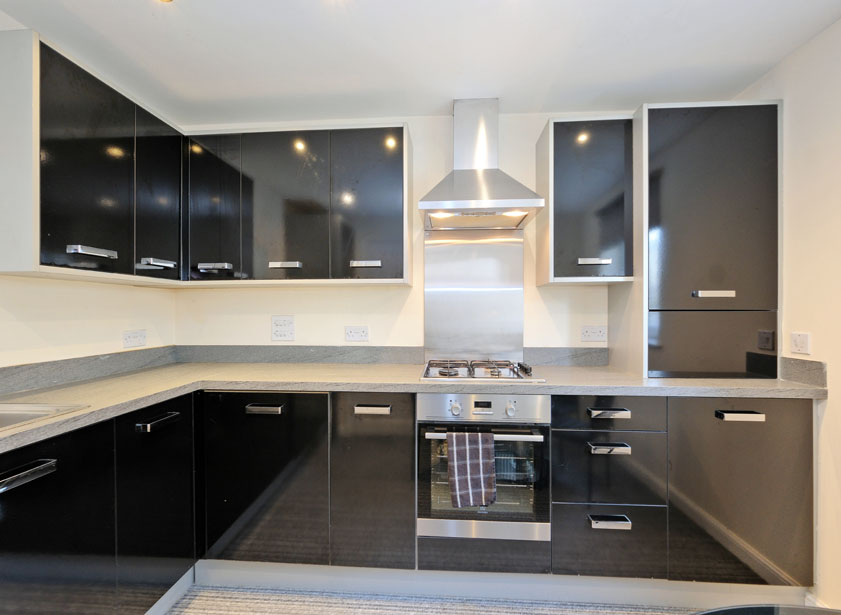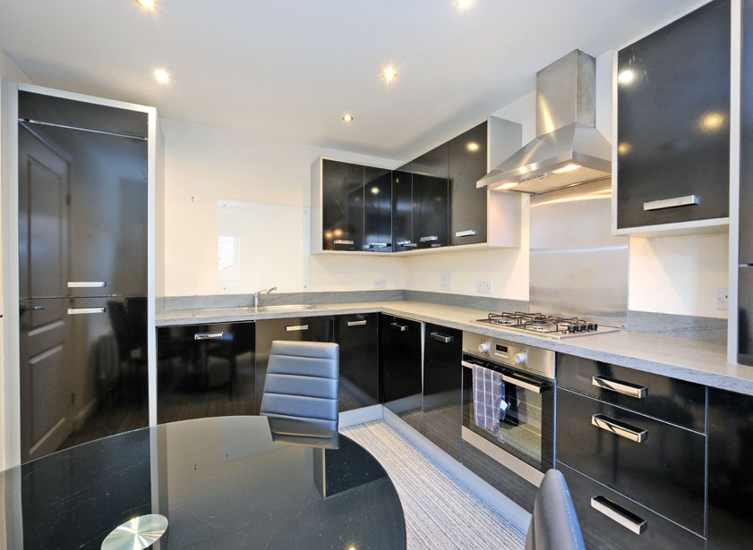 The kitchen accessed from the lounge is fitted with a range of wall and base units with co-ordinating work surfaces, incorporating a stainless steel sink with mixer tap. Included are a gas hob and an electric oven, stainless steel extractor hood and splashback, integrated dishwasher, fridge/freezer and washer/dryer. The gas central heating boiler is located within the kitchen. Ample space for a dining table and chairs. A window overlooks the rear of the property.