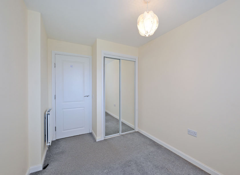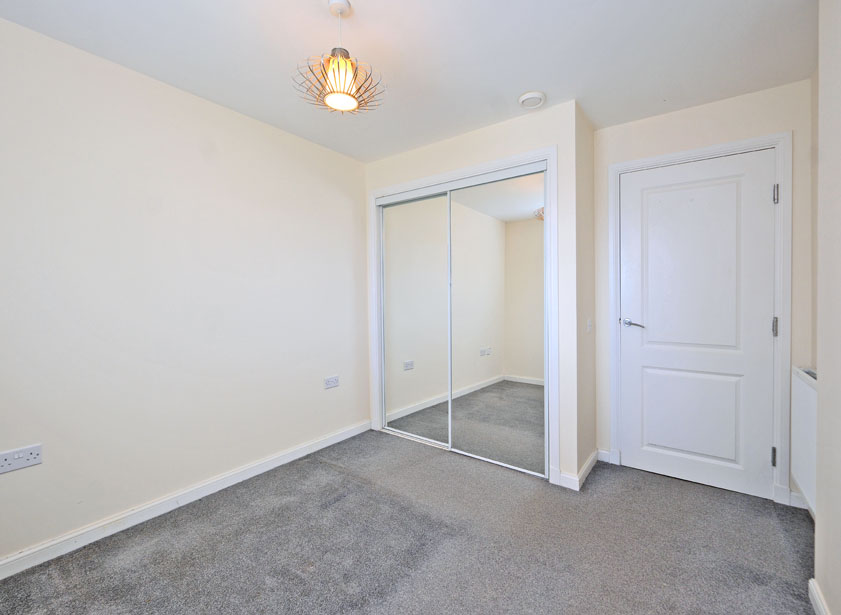 Two double bedrooms accessed from the hallway have windows overlooking the front of the building and both have built-in mirror door wardrobes providing shelving and hanging space.