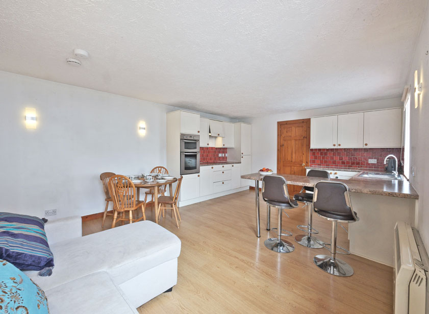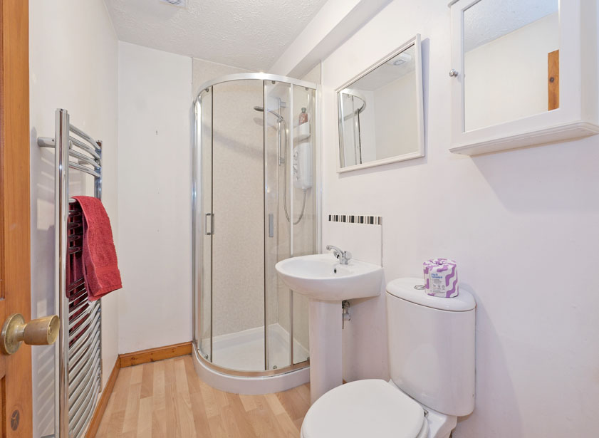 The family room leads to the ground floor double bedroom with fitted storage and the bedroom leads to a three piece en-suite shower room with recently installed electric shower. The en-suite benefits from an electric towel radiator and extractor fan.