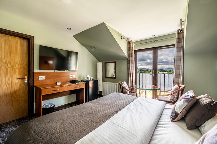 A triple aspect resident’s lounge features a full height window overlooking the loch to the front. Double doors off the lounge open to an exclusive balcony.