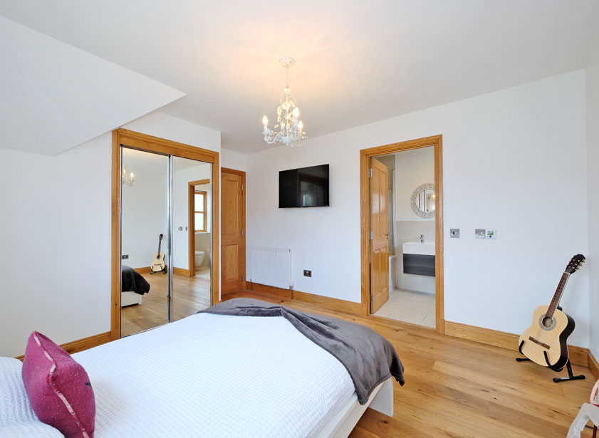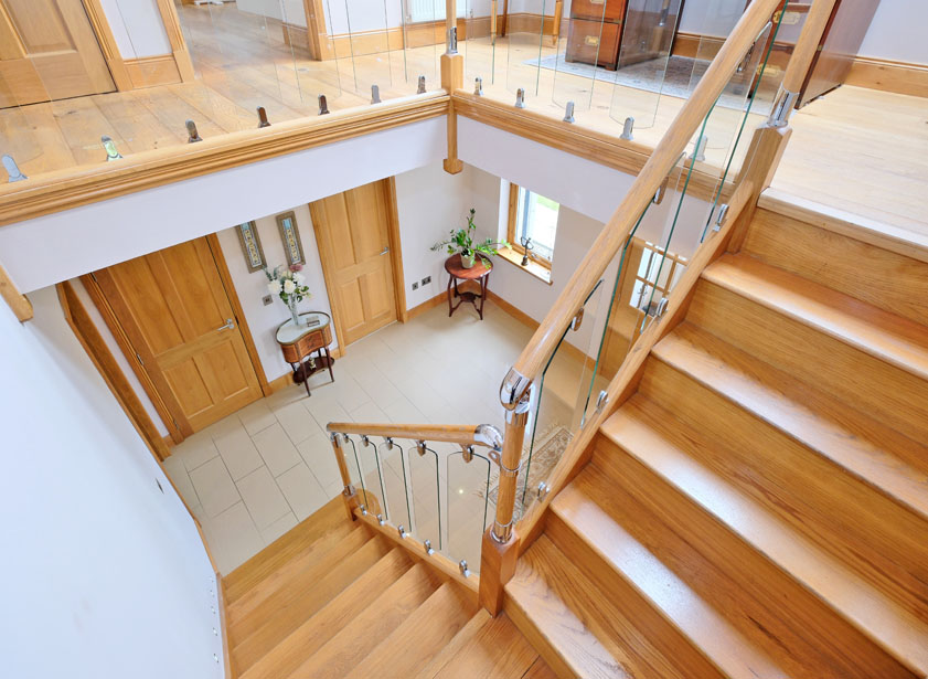 From the reception hall an oak staircase with attractive oak banister and contemporary glass balustrade leads to the galleried upper landing and remaining accommodation. Triple Velux windows on the upper landing flood the area with natural light. A fitted linen cupboard houses the hot water cylinder and shelved storage facilities. Engineered oak flooring throughout.
