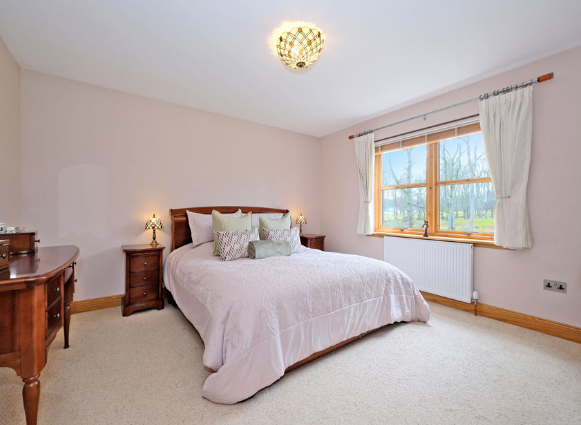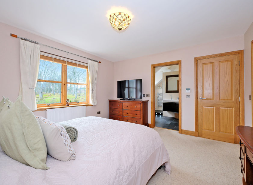 Of generous proportions, the main bedroom is light and airy and overlooks the rear gardens and mature woodland beyond. This bright room allows ample space for a range of furnishings and is further enhanced by a walk-in wardrobe offering extensive shelf and hanging space, carpet flooring throughout the main suite.