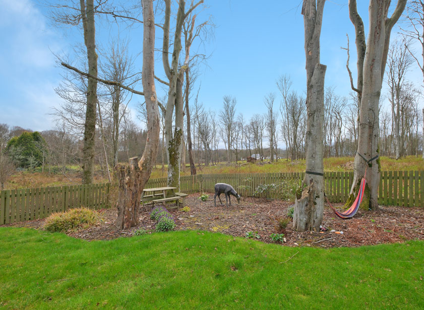 The front garden is fully laid to lawn, paved paths lead to the generous west facing rear garden, partially enclosed by timber fencing and enjoying a superb mature woodland back drop. The garden is mainly laid to lawn with raised planters and decorative borders stocked with a variety of seasonal plants, shrubs and trees. A large, paved terrace to the rear of the property features an attractive Yardistry pavilion ideal for outdoor entertaining. Items of garden furniture are available by separate negotiation. External; power points and water tap. Keter shed to remain.