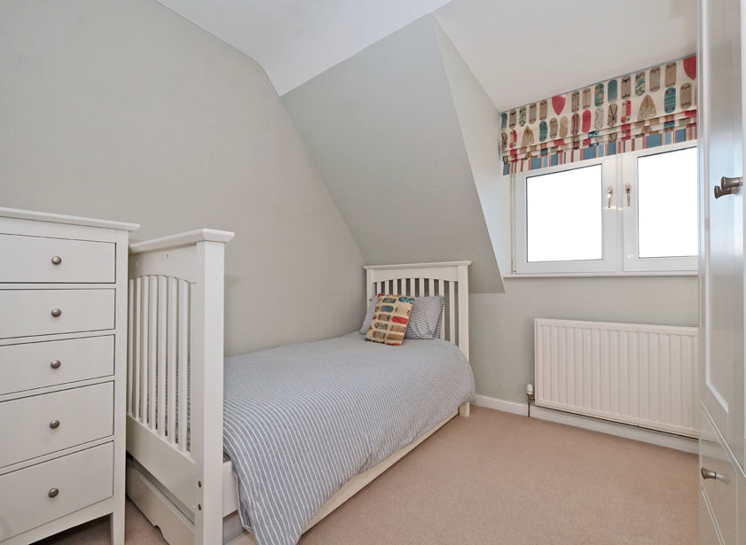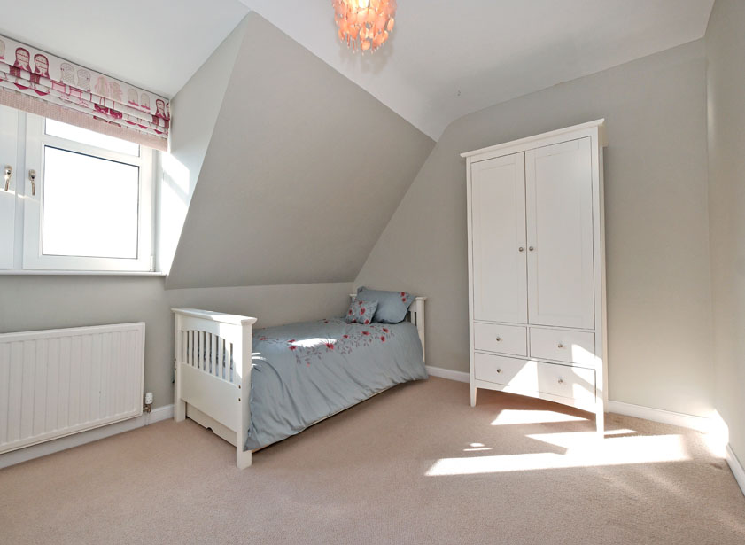 There are two further spacious double bedrooms on the upper landing, both rooms benefit from dormer windows to the south facing aspect and offer ample space for a range of furnishings. The middle bedroom has an access hatch with fixed pull down ladder to attic space, which is floored and equipped with light.