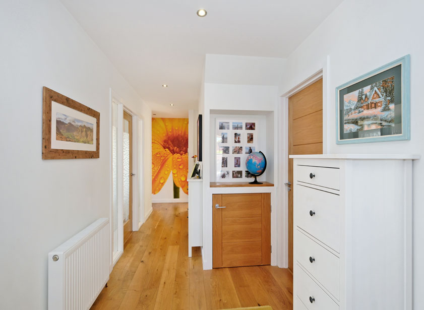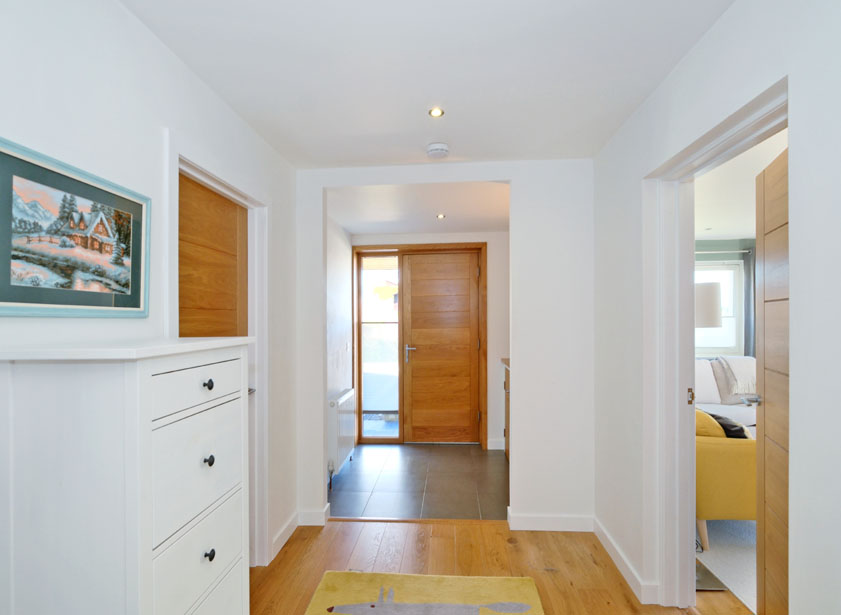 Beneath a sheltered canopy, the composite entrance door with window panel leads into the vestibule area and then on to the welcoming hall from which a staircase ascends to the first floor. A half height cupboard houses the electricity circuit breakers. A further under the stair storage cupboard in the hall provides extra storage facilities.