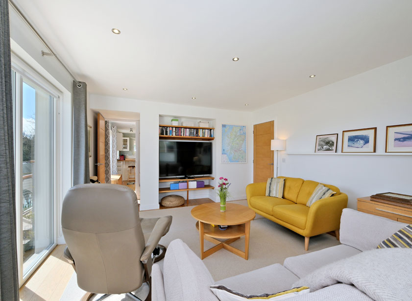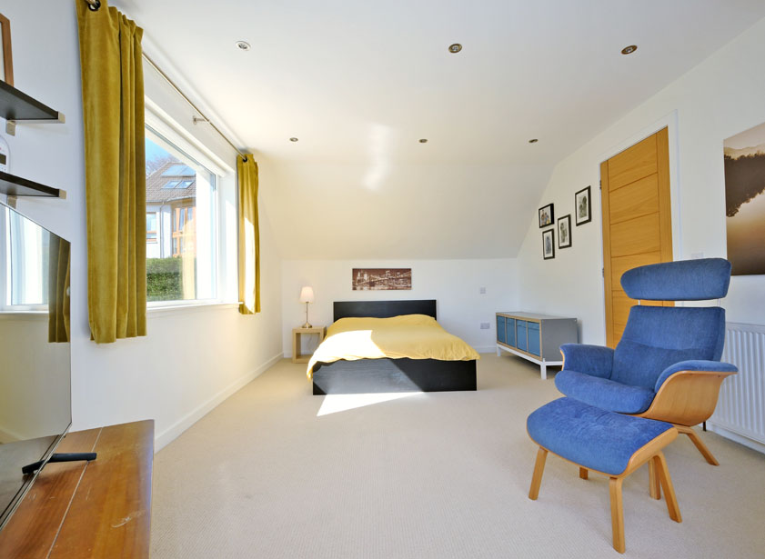 A generously proportioned bedroom/lounge benefits from pleasant décor and has a picture window overlooking the rear garden as well as two Velux windows providing views over the countryside.