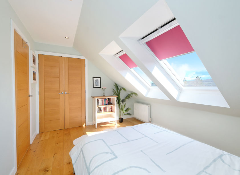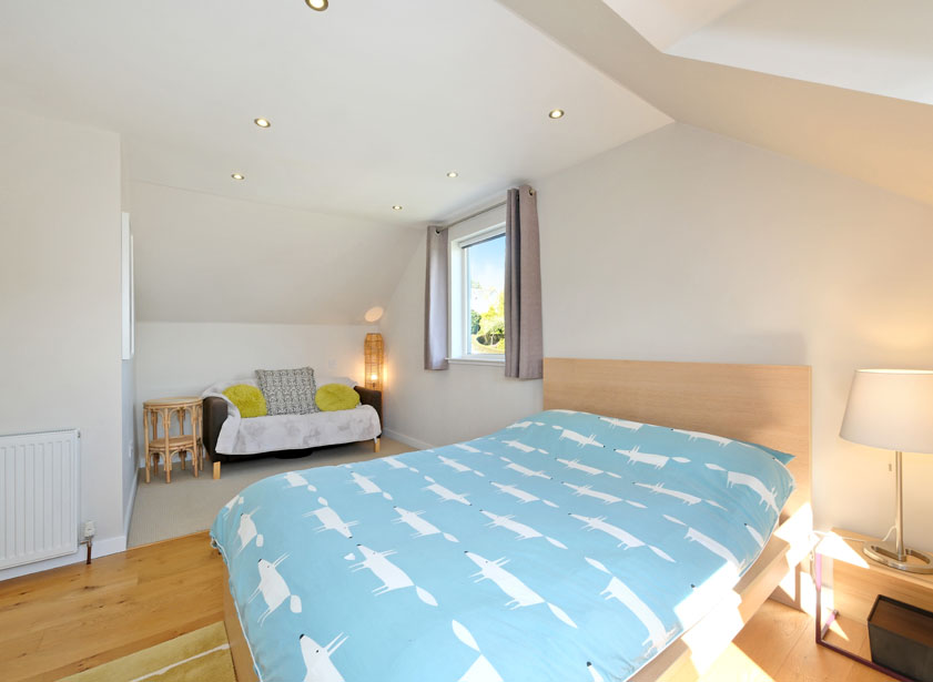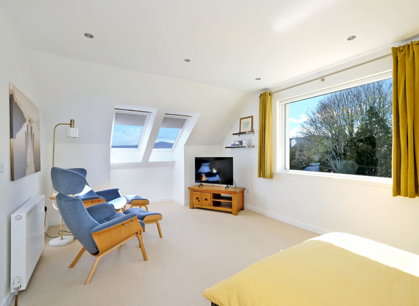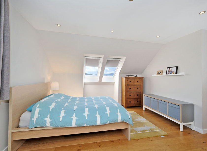 Double bedroom three has views overlooking the hills with two Velux windows and benefits from a built in wardrobe providing hanging and shelving space.