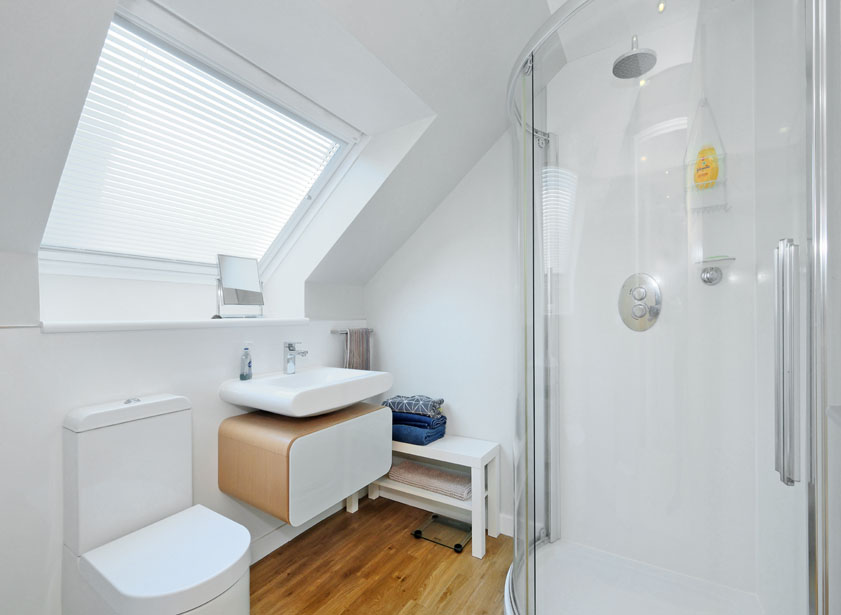 Completing the living accommodation is the bright shower room. Fitted with a walk in shower enclosure which is fully aqua panelled and includes a mains shower appliance. A vanity unit incorporates a wash hand basin. Separate WC. A Velux window provides natural light.