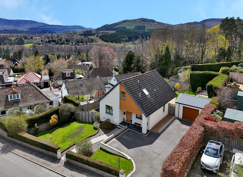 Banchory is approximately eighteen miles west of Aberdeen, making for an easy commute to Aberdeen city, Westhill and Kingswells, particularly since the opening of the AWPR. The town is well served by nurseries, while the property also lies within walking distance of Banchory Primary School and the Academy. Locally, there is a wide range of recreational and sporting activities including 18 and 9 hole golf courses, driving range, bike trails, and tennis courts, while salmon and trout fishing are both available on the Rivers Dee, Feugh and at Raemoir Trout Fishery. Surrounded by low hills, Banchory offers numerous walks, including the popular trek to the summit of Scolty Hill, and walks around Crathes Castle and the neighbouring Milton of Crathes. Banchory boasts a good selection of shops, including Tesco and Morrison’s supermarkets, whilst there are also a variety of restaurants and hotels available. During the winter months skiing is available nearby at the Lecht and Glenshee resorts.
