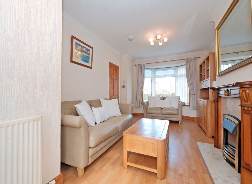 The property is situated amidst generously proportioned garden grounds which are predominately laid in grass with established borders. Bordered by both manicured beech hedging and fencing, a paved driveway provides off street parking, while a timber shed and a further metallic shed are ideal for exterior storage.