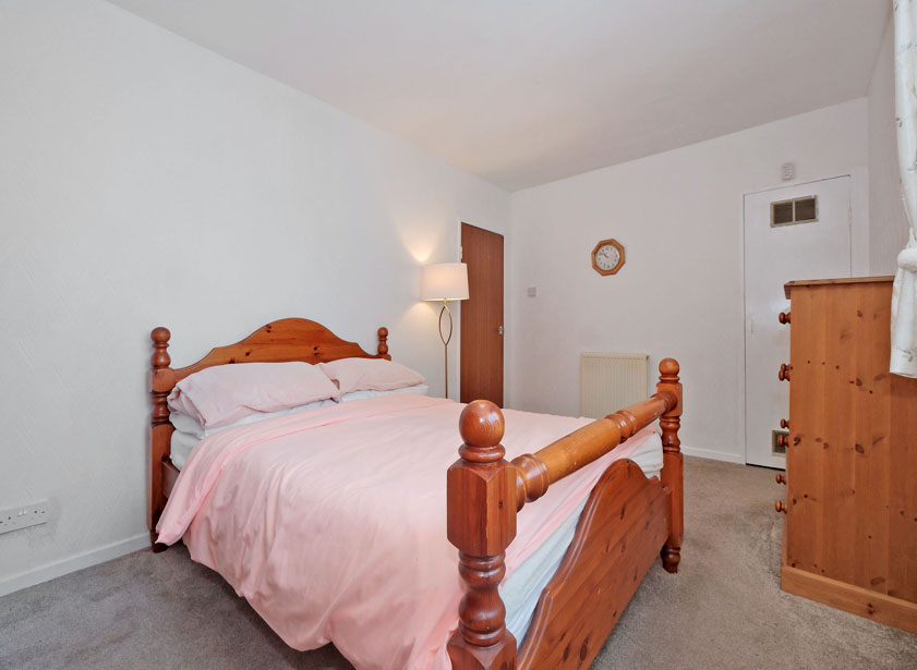 Double bedroom one is a well proportioned room overlooking the property frontage. Fully carpeted and of neutral decoration, there is ample space available for freestanding furniture, while a fitted cupboard houses the central heating boiler and a range of wooden shelving. Enjoying south facing views over the the rear garden, double bedroom two is a further well proportioned room of neutral decoration and carpeting. A fitted cupboard houses the hot water cylinder and a range of shelving.