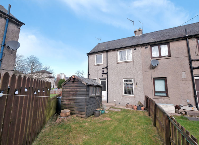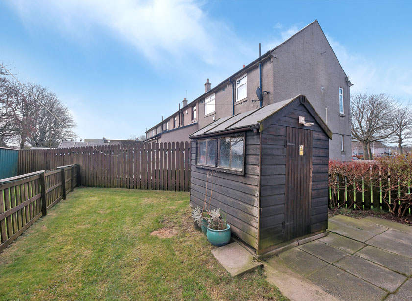 Please note that directly to the rear of the property a fence between No 31 and the adjoining property has been erected on a shared former drying green. The adjoining property has a right of access across the rear of No 31 in order to take their waste bins to and from the property.