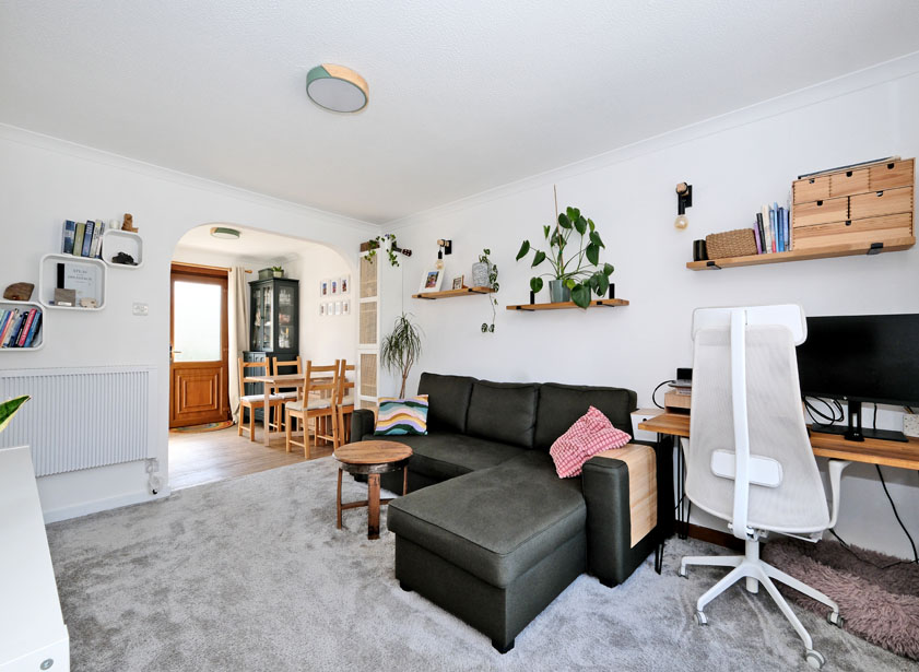 All fitted floor coverings, window coverings (except the ones in the second bedroom) and light fittings are included in the sale price, along with the dishwasher, fridge-freezer and cooker.