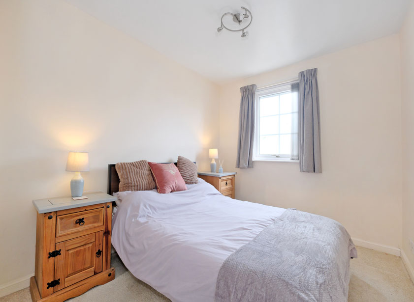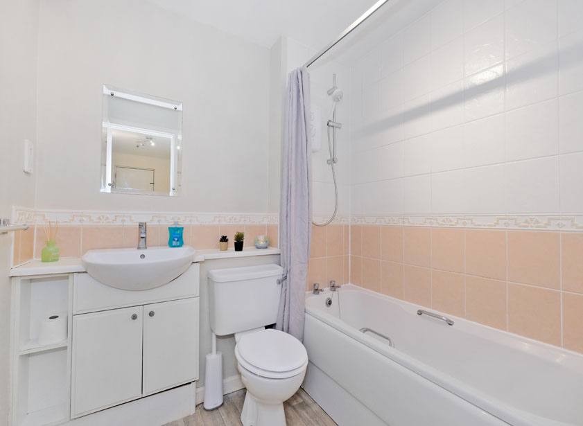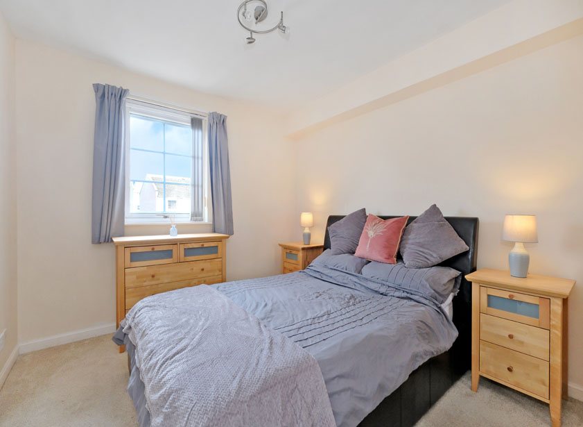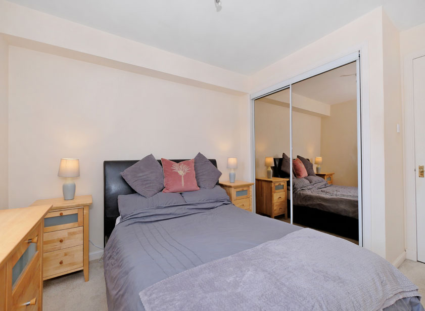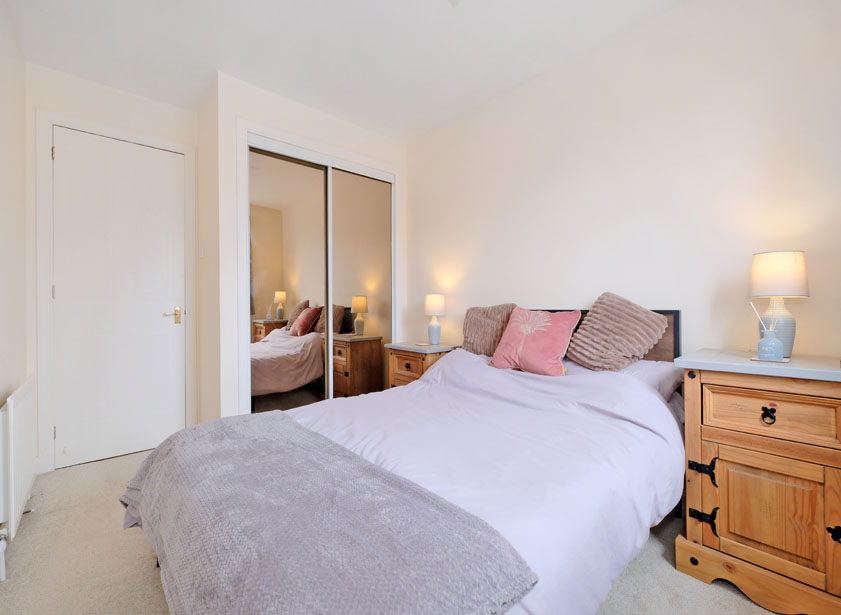 Double bedrooms one and two are both situated overlooking the rear of the development. Fully carpeted and of pleasant decoration, both rooms include double fitted wardrobes with sliding mirrored panel doors, providing both shelf and hanging space.