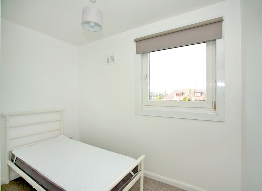Bedroom three enjoys views over the property frontage. Of neutral decoration and carpeting, an elevated shallow cupboard provides fitted storage.